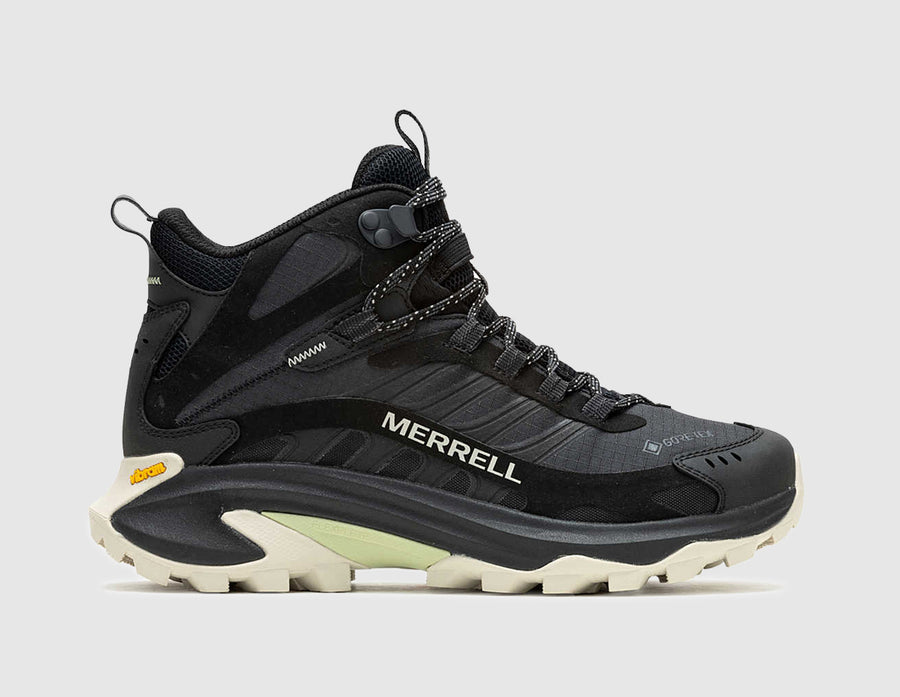 Distilling years of experience on the trails, the Merrell Women's Moab Speed 2 Mid GTX shoes bring innovation from hikers everywhere to your feet. Constructed with vegan materials, a nylon ripstop and TPU upper is protected with a waterproof GORE-TEXT membrane that retains breathability while keeping moisture out. A bellows tongue is constructed to keep debris out, while a padded collar and FloatPro Foam midsole add comfort. Inside, lightweight FlexPlate technology provides stability and structure. An exclusive Vibram TC5+ outsole, complete with lugs, ensures that every step taken in the Merrell Women's Moab Speed 2 Mid GTX is steady across a wide variety of surfaces.