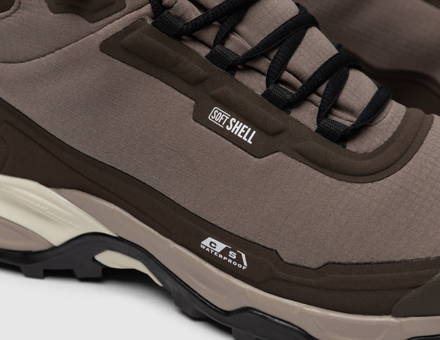 Take to the trails with the Salomon Shelter CSWP, bringing both durability without sacrificing performance. Made for the elements, the softshell fabric is encased with a ClimaSalomon waterproof design, and Climatherm technology to keep you dry, warm and secure in any alpine. The Salomon Shelter CSWP is finished with a geometric patterned Mud Contagrip outsole to deliver premium support on any terrain.