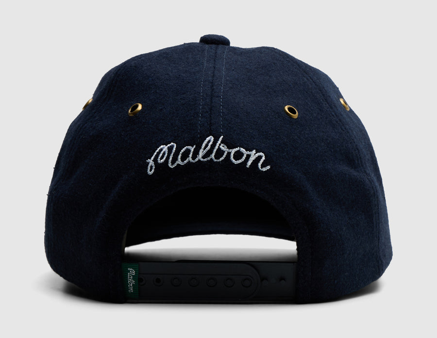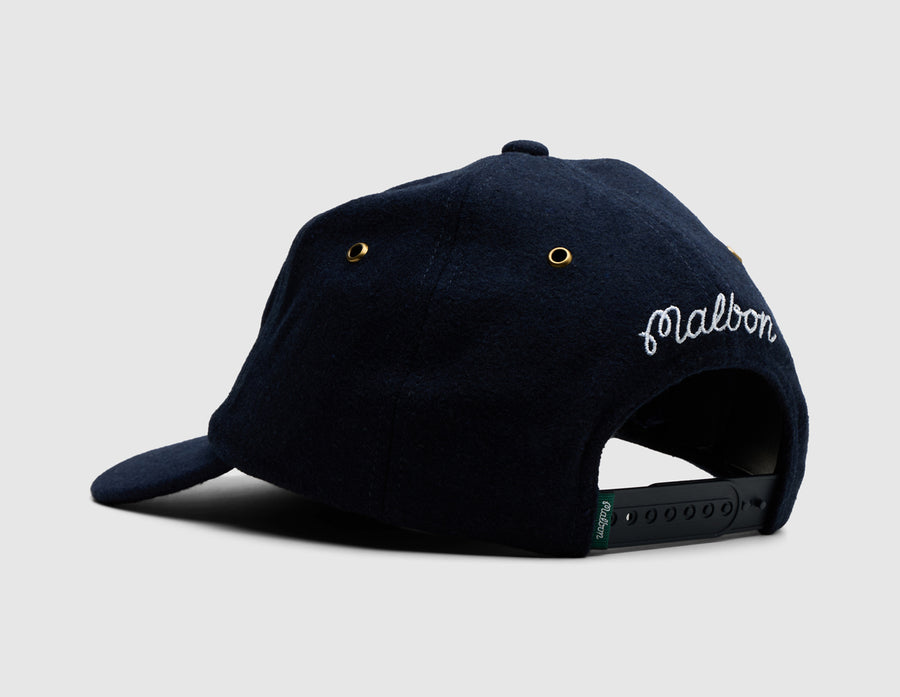 Constructed with a classic five-panel build, the Malbon Maxwell Snapback is a standout piece that brings a refined style to any look. Crafted from premium wool, this clean and relaxed silhouette features embroidered Malbon Golf branding on the front with script logo detailing across the back for a balanced finish. An adjustable snapback closure ensures a personalized fit, making it easy to wear all day long whether you're on the course or off duty.