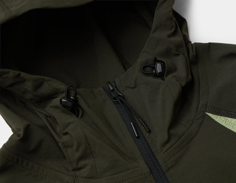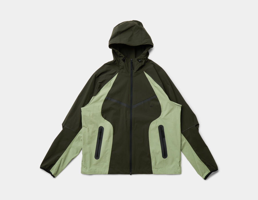 Cut with a roomy fit, the Nike Tech Windrunner Jacket is made for comfort with integrated stretch and articulated elbow design that provides room to move. Dri-FIT technology wicks moisture away for comfort, while a three panel hood offers full coverage in case the conditions change. Two tape-reinforced hand pockets are secured with zip closures for safe storage, while an adjustable drawcord with cord locks at the hem ensures the Nike Tech Windrunner Jacket is a perfect fit.