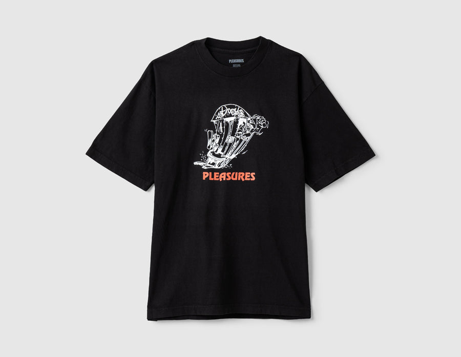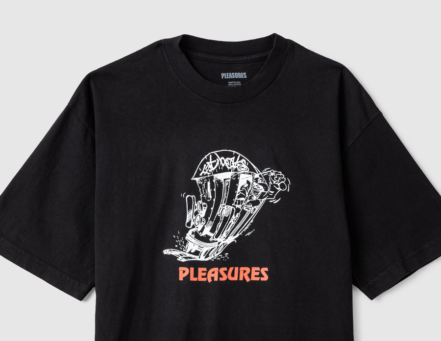 Featuring custom graphics and Pleasures branding details, the Pleasures 9th Street Tee gives the wardrobe essential a unique look. 100% cotton construction offers breathability, while the boxy fit offers comfortable wear. The Pleasures 9th Street Tee is then finished off with a ribbed crewneck collar for added durability.