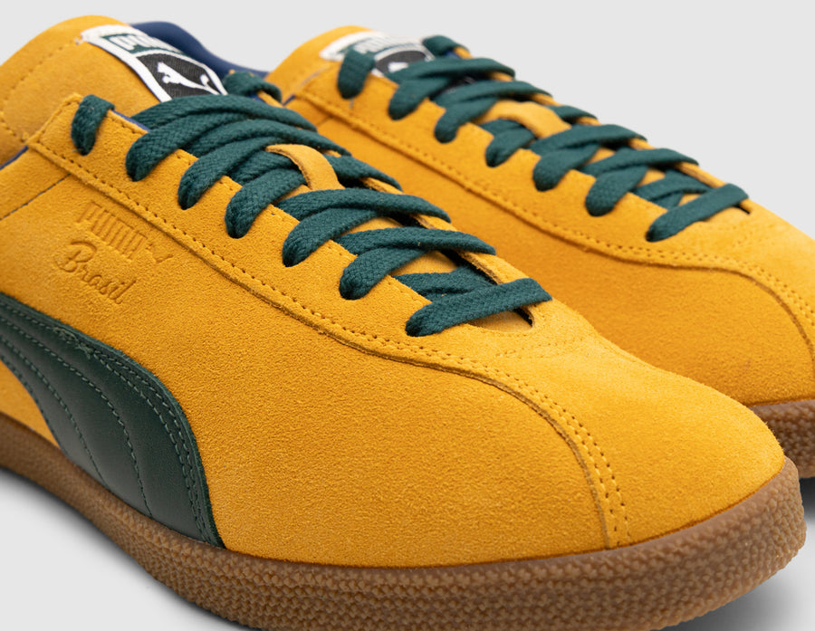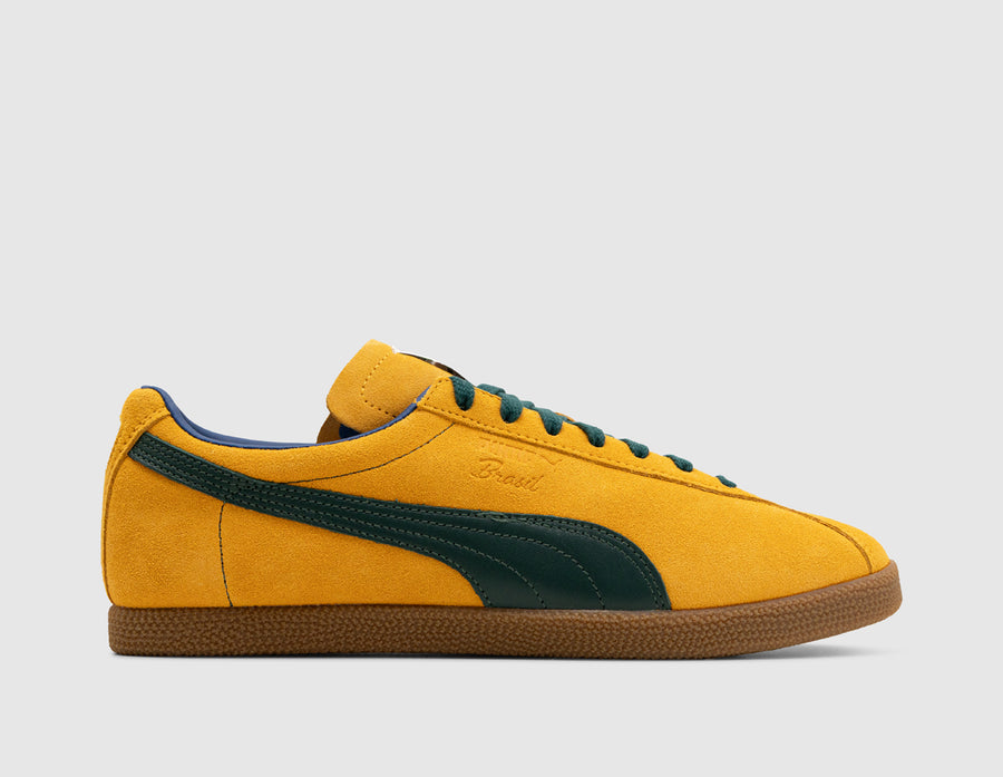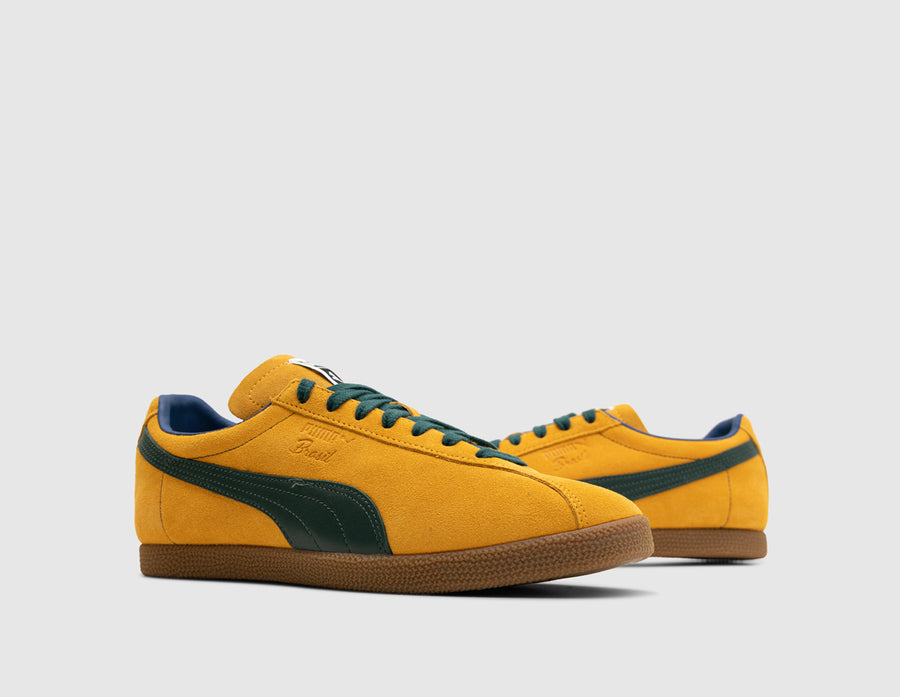 Originally designed for the country's greatest footballer, the PUMA Brasil makes its return from the archives, retaining all its former glory. Formed with premium suede, contrast Formstrip detailing runs along the sidewalls, complementing the contrast lacing. Debossed Brasil branding details adorns the outside, while inside, an OrthoLite insole offers added comfort. Rounded out with a textured gum rubber outsole, the PUMA Brasil perfectly channels retro influences for today's styling.