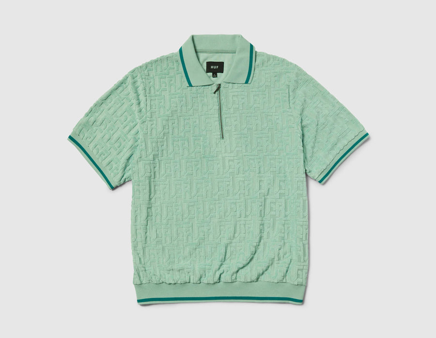 Drawing from vintage styling while channeling modern influences, the HUF Tether Jacquard Top offers comfortable, all-day wear with 100% cotton construction. Knit with a terry, all-over jacquard pattern, a tipped collar, cuffs and hem add a decidedly preppy twist. A quarter-zip closure replaces the traditional buttons, while HUF branding details, including a small label at the side seam, finish off the HUF Tether Jacquard Top.