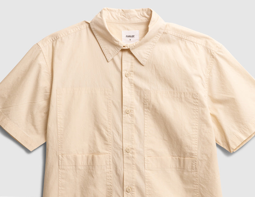 The essential short-sleeved button up gets a more utilitarian spin with the Parlez Hyro Shirt. Four chest pockets adorn the front, offering ample room for storage. Constructed with crisp cotton poplin, the full-length placket is adorned with tonal branded buttons for a minimalist colour palette. Cut with a boxy fit for comfort, a box pleat at the back offers additional room for movement. Finishing off the Parlez Hyro Shirt is another subtle touch, with tonal embroidery under left pockets.