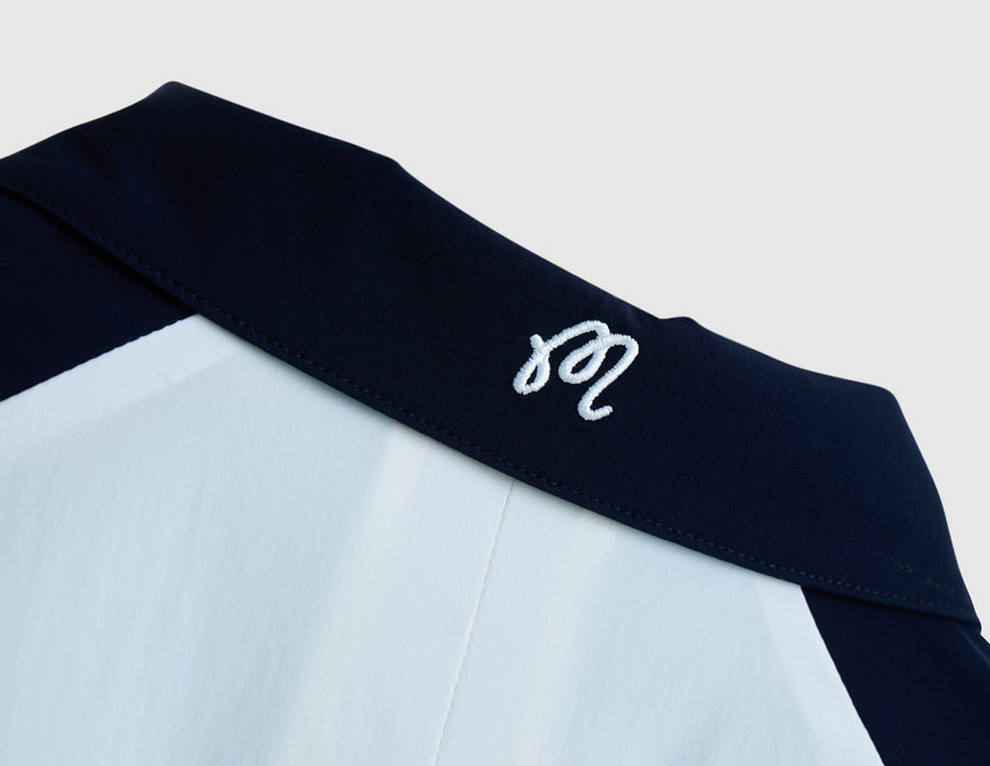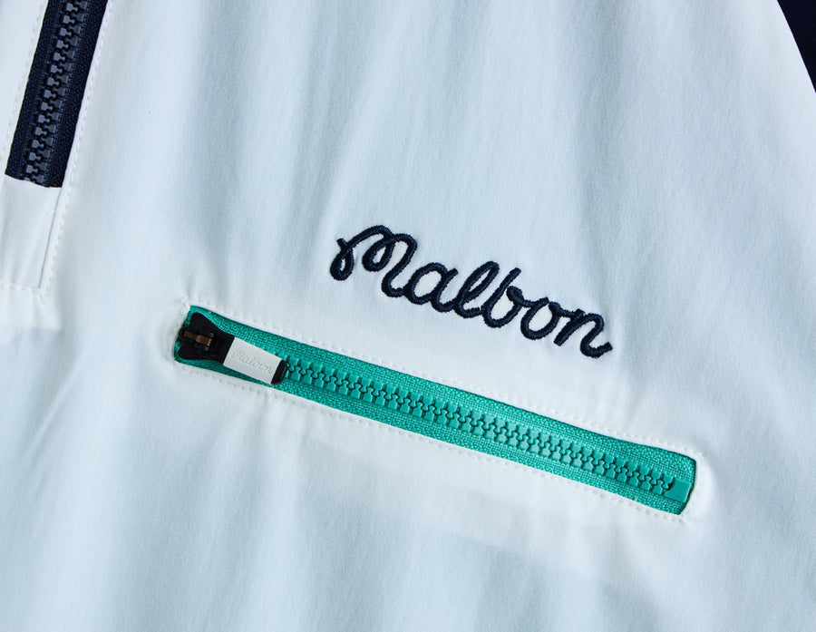 Blending performance function with a clean, sport-inspired look, the Malbon Marina Windshirt delivers a lightweight layer built for movement. Designed with a relaxed fit, this piece features dual raglan sleeves for unrestricted range of motion, while mesh lining and a vented back pleat help keep airflow steady. Practical chest and side pockets offer everyday utility, and elastic trims at the waist and cuffs ensure a secure, comfortable fit. Finished with embroidered Malbon branding, it’s a versatile layer made for on and off the course.